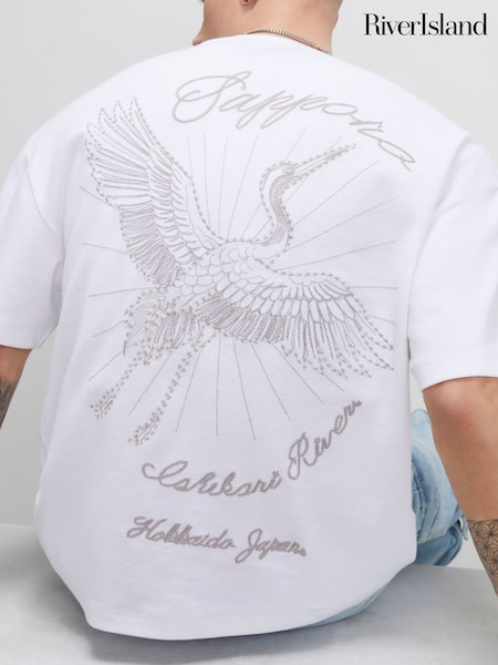 River Island White Oversized Fit Kagawa Dragon T-Shirt