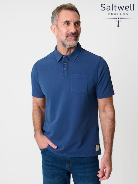 Saltwell Blue Cotton Short Sleeve Polo Shirt