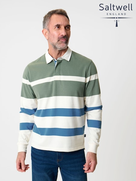 Saltwell Green Stripe Cotton Long Sleeve Polo Shirt