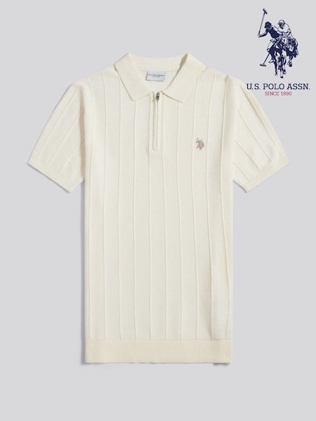 U.S. Polo Assn. Cream Zip Knit Polo Shirt