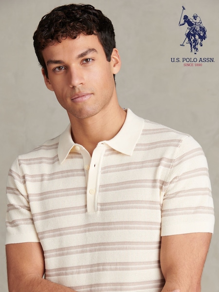 U.S. Polo Assn Cream Stripe Open Knit Polo Shirt