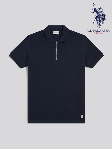U.S. Polo Assn Blue Popcorn Texture Zip Polo Shirt