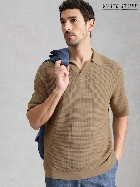 White Stuff Brown Thame Texture Knitted Polo Shirt