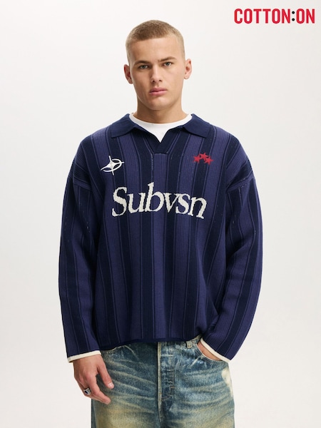 Cotton On Blue Box Fit Rugby Polo Shirt