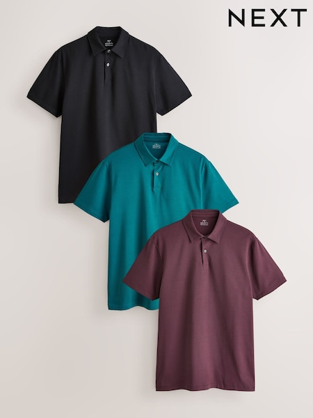 Teal/Purple/Black Plain Short Sleeve Jersey Polo Shirts 3 Pack