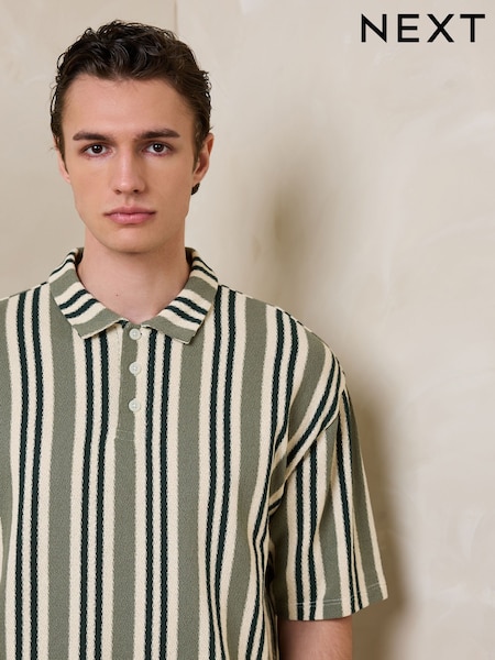 Green/White Vertical Stripe Polo Shirt