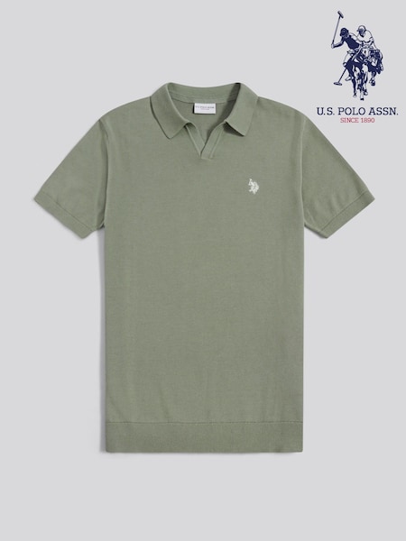 U.S. Polo Assn Green Tipped Open Knit Polo Shirt