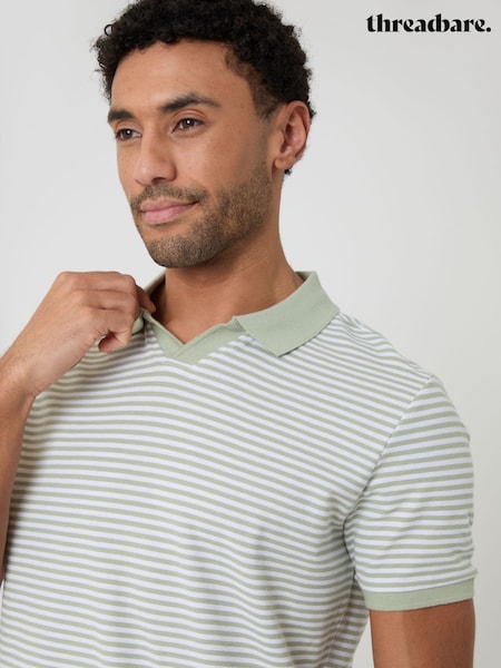 Threadbare Green Stripe Trophy Neck Polo Shirt