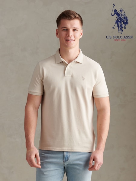 U.S. Polo Assn Beige Double Horsemen Polo Shirt