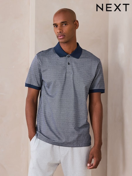 Navy Blue Slim Fit Cotton Rich Pointelle Knit Polo Shirt