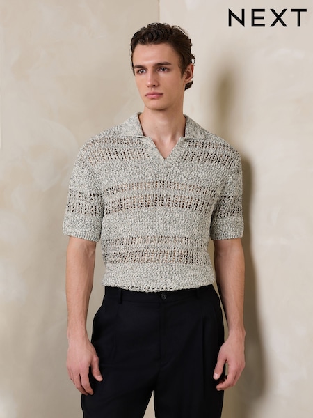 Neutral Twist Crochet Knit Trophy Polo Shirt