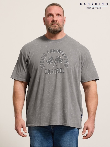 BadRhino Big & Tall Grey Acid Wash Castrol Bike T-Shirt