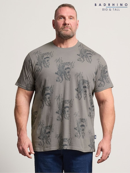 BadRhino Big & Tall Grey All-Over Print Tiger Bamboo T-Shirt