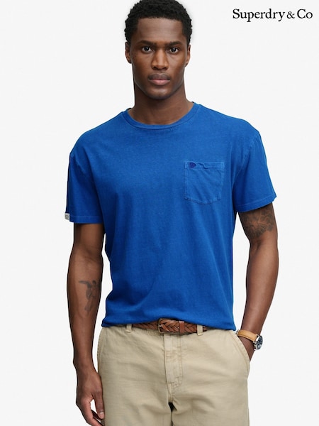 SUPERDRY Blue Classic Cotton Linen Pocket T-Shirt