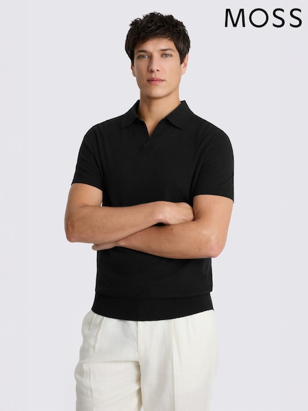 MOSS Black Linen Blend Milano Skipper Polo Shirt