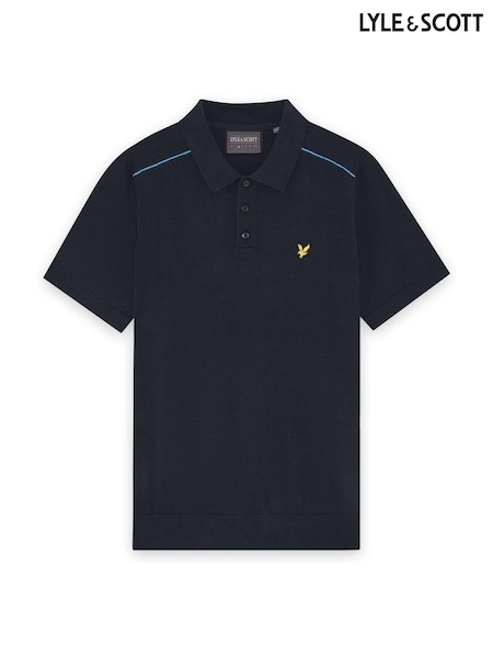 Lyle & Scott Blue Golf Tipped Knitted Polo Shirt