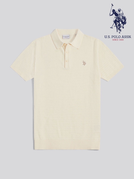U.S. Polo Assn Cream Herringbone Texture Knit Polo Shirt