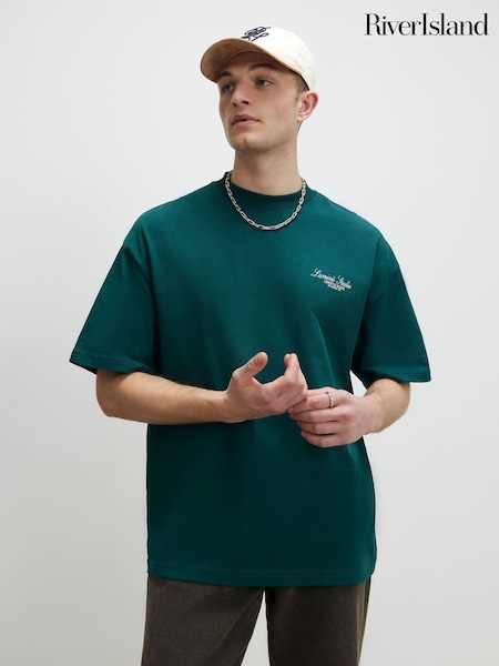 River Island Green Oversized Alpine Badging Crew Neck T-Shirt