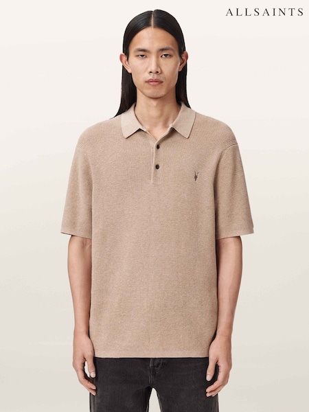 AllSaints Grey Aspen Short Sleeve Polo Shirt