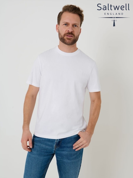 Saltwell White Garment Dye Cotton Jersey Crew Neck T-Shirt
