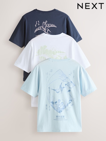 White/Blue/Grey Regular Fit Graphic Print T-Shirts 3 Pack