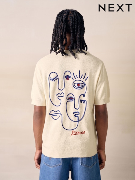 Ecru White Picasso Back Graphic Knitted T-Shirt