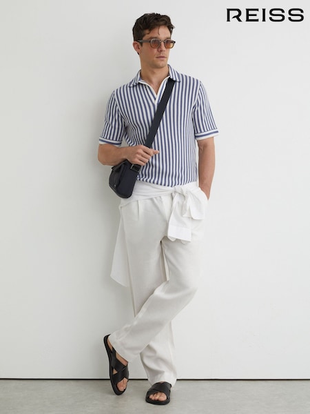 Reiss Blue/ Off White Alba Cotton-Blend Stripe Knit Polo Shirt