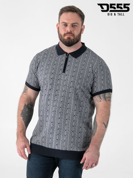 D555 Blue Jacquard Knitted Polo Shirt With Quarter Neck Zip
