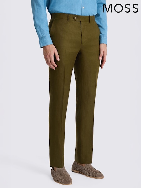 MOSS Olive Tailored Fit Twill Linen Suit Trousers