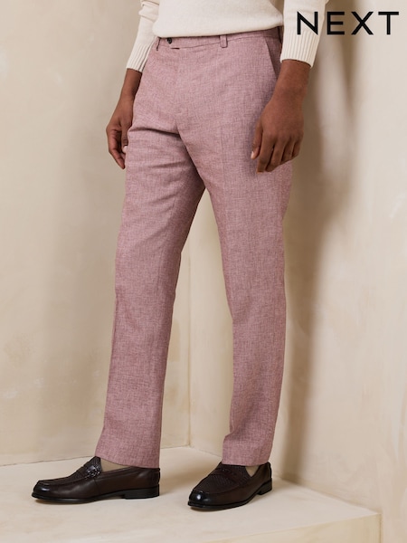 Pink Tailored Fit Linen Blend Texture Suit Trousers