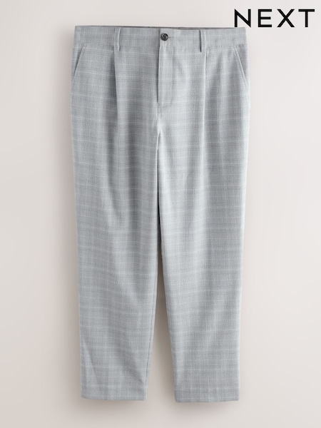 Grey Relaxed Fit Seersucker Check Suit Trousers