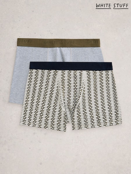 White Stuff Green Hove Print & Plain Boxers 2 Pack