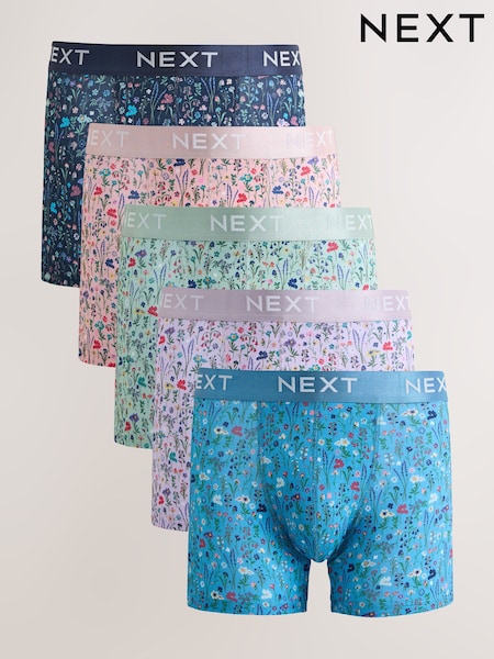 Blue/Green Floral Print 5 Pack Trunk Boxers