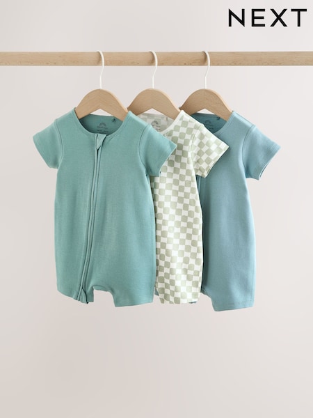 Green Two Way Zip Baby Rompers 3 Pack (0mths-3yrs)