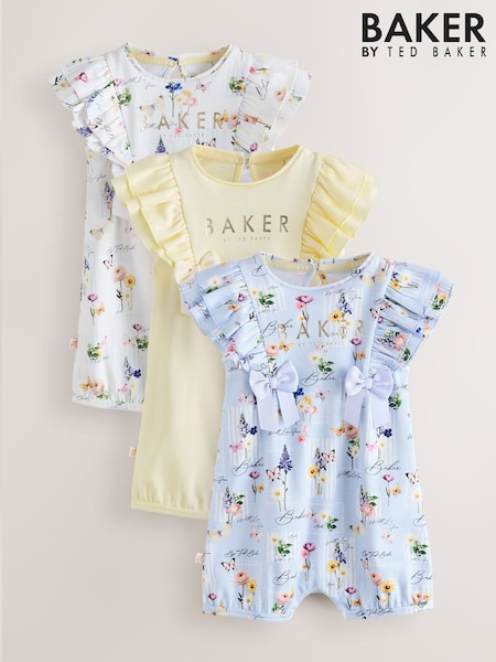 Baker by Ted Baker 3 Pack Frill Sleeve Rompers