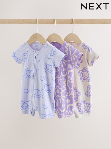 Lilac Purple Two Way Zip Baby Sleepsuits 3 Pack (0mths-3yrs)