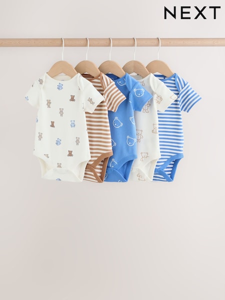 Brown Bear Short Sleeve Baby Bodysuits 5 Pack