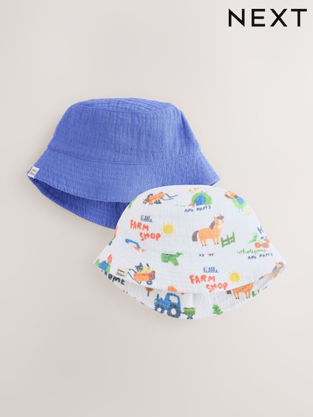 Blue Farm Woven Baby Bucket Hats 2 Pack (0mths-2yrs)