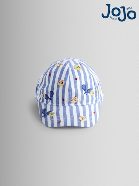 JoJo Maman Bébé Tennis Blue Stripe Embroidered Cap