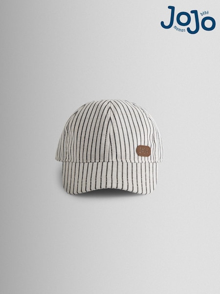 JoJo Maman Bébé Ecru Striped Embroidered Cap
