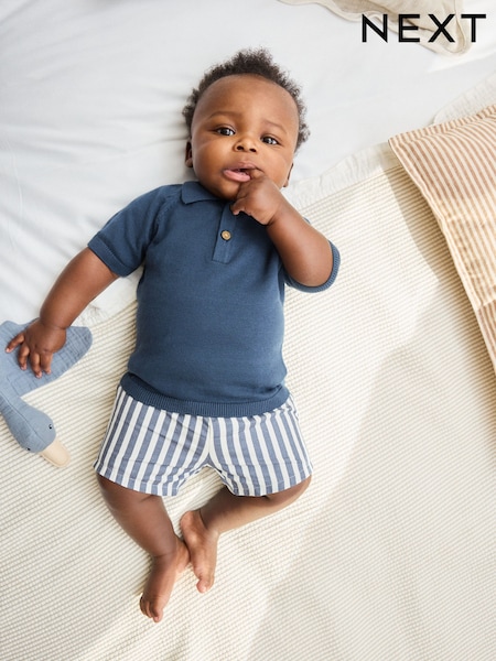Navy Blue Knitted Top and Woven Shorts Baby Set (0mths-2yrs)
