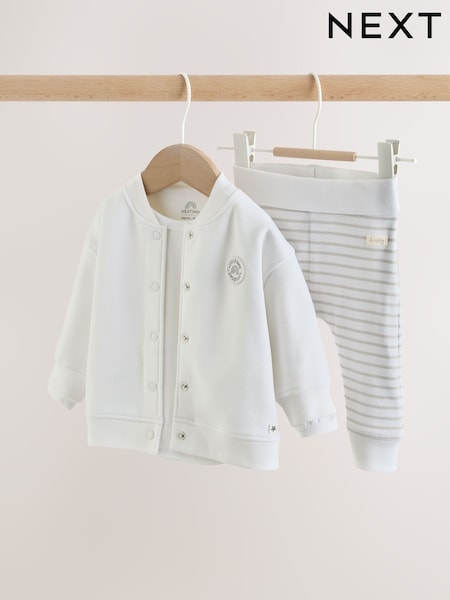 White Jersey Jacket Bodysuit and Leggings 3 Piece Baby Set (0mths-2yrs)