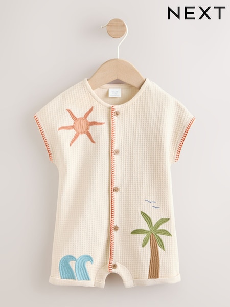 Neutral Palm Print Jersey Waffle Baby Romper (0mths-3yrs)