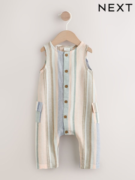Blue Stripe Woven Baby Romper (0mths-2yrs)