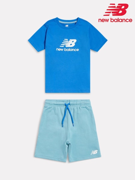 New Balance Blue Stacked Logo T-Shirt & FT Shorts Set
