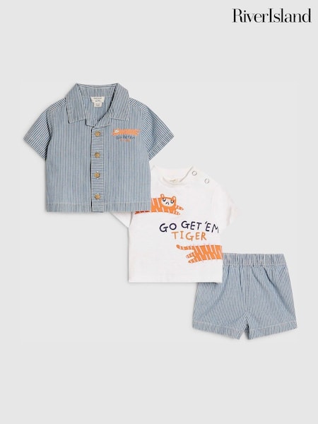 River Island Blue Tiger Stripe Shirt & Shorts Set 3 Piece