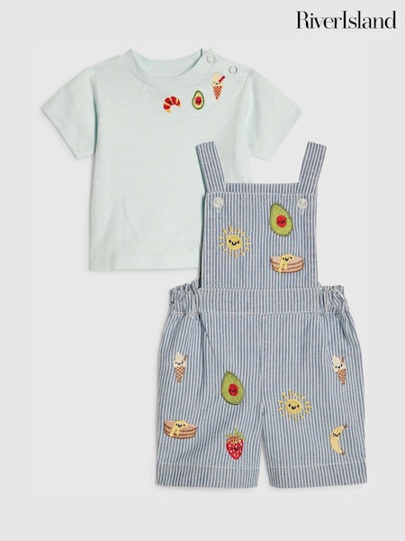 River Island Blue Stripe Dungarees & Top Set
