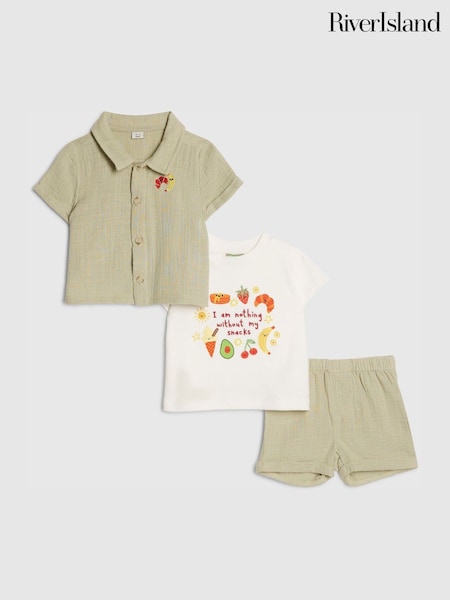 River Island Green Abbie Rosie Snacks T-Shirt & Shorts Set