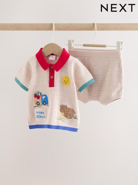 Neutral/Bright Farm Knitted Top and Shorts Baby Set (0mths-2yrs)
