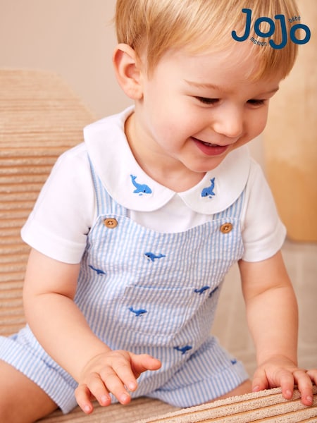 JoJo Maman Bébé Blue Whale Stripe Dungaree & Body Set